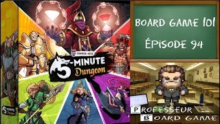 5-Minute Dungeon est un jeu de cartes coopératif, chaotique et en temps réel dans lequel les joueurs n’ont que cinq minutes pour s’échapper d’un donjon aléatoire. La communication et le travail d’équipe sont essentiels à la survie, car il n’y a pas le temps d’élaborer un plan réfléchi et il est impossible de prévoir les dangers à venir.