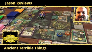 Ancient Terrible Things est un jeu d’aventure horrifique d’inspiration pulp pour 2 à 4 joueurs. Vous y incarnez des aventuriers intrépides explorant un fleuve de jungle sombre et menaçant. À chaque tour, vous devez voyager vers un Lieu Funeste, affronter une Rencontre Ominieuse et tenter d’en percer les Secrets Anciens. En cas de réussite, grâce à une combinaison de dés, de jetons et de cartes, vous ajoutez ces secrets à votre score. En cas d’échec, vous libérez une Chose Terrible qui comptera négativement à la fin de la partie. Le jeu s’achève lors de l’Événement Indicible, et le joueur possédant le plus de Secrets Anciens l’emporte.