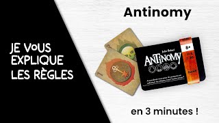 Antinomy est un affrontement en duel entre deux sorciers rivaux à la recherche de puissants cristaux de paradoxe. Vous jouez une carte de votre main en utilisant sa couleur ou son symbole pour plonger dans le passé, ou son nombre pour voyager vers le futur. La carte sur laquelle vous atterrissez est échangée avec celle que vous avez jouée, ce qui vous permet de constituer progressivement une main victorieuse. Où que vous alliez, un jeu de cartes astucieux et la formation de brelans provoquent des paradoxes qui donnent naissance à vos propres cristaux. Vous pouvez aussi affronter votre adversaire lors d’un affrontement afin de lui arracher le contrôle de ses cristaux. En collectant cinq de ces cristaux, vous assurerez votre domination sur l’espace et le temps. Saurez-vous maîtriser le pouvoir d’Antinomy ?