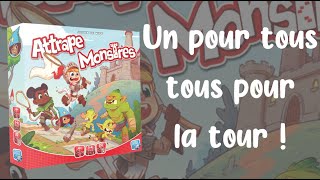 Attrape Monstres, à l’image de son prédécesseur Panique au Château, est un jeu coopératif dans lequel les joueurs unissent leurs efforts pour défendre leur château. Cette version supprime toutefois toute nécessité de lecture et favorise le développement de compétences éducatives comme la reconnaissance des couleurs et des formes, la résolution de problèmes et le respect du tour de jeu.
