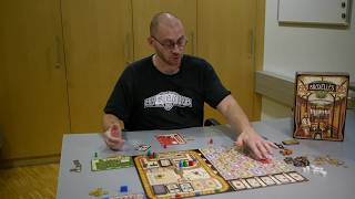 Après cinq manches, la partie s’achève. On marque des points supplémentaires selon son niveau d’architecte, ses cartes bonus, l’avancement de son œuvre et l’argent restant. Le joueur au score le plus élevé l’emporte.