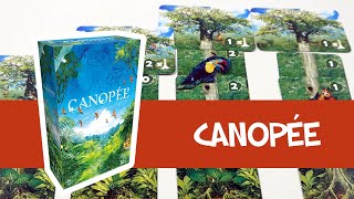 Canopée est un jeu dans lequel deux joueurs s’affrontent pour faire prospérer la forêt tropicale la plus généreuse. L’écosystème de la jungle repose sur la symbiose et le mutualisme, et les joueurs doivent faire pousser de grands arbres et une végétation luxuriante afin d’attirer la faune la plus variée. En choisissant avec soin ce qui se développe dans votre forêt, vous pouvez créer un équilibre idéal entre flore et faune et bâtir une canopée florissante.