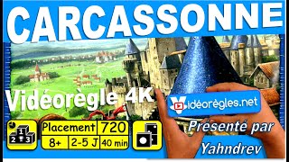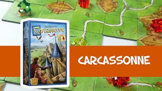 Carcassonne est un jeu de placement de tuiles dans lequel les joueurs piochent et posent une tuile représentant un élément du paysage du sud de la France. La tuile peut montrer une ville, une route, un cloître, une prairie ou une combinaison de ces éléments, et doit être placée à côté de tuiles déjà en jeu, de manière à relier les villes entre elles, les routes entre elles, et ainsi de suite. Après avoir posé une tuile, le joueur peut décider d’y placer l’un de ses meeples dans l’une des zones : dans une ville en tant que chevalier, sur une route en tant que brigand, dans un cloître en tant que moine, ou dans un champ en tant que paysan. Lorsque la zone est complétée, ce meeple rapporte des points à son propriétaire.
