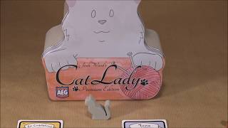 Dans Cat Lady, vous incarnez une amoureuse des chats, digne héritière de Marie-Antoinette ou d’Ernest Hemingway. À chaque tour, vous piochez trois cartes alignées (ligne ou colonne) dans une grille 3x3 pour constituer votre collection : chats à adopter, nourriture, jouets, herbe à chat, costumes, etc.