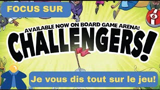Challengers ! est un jeu de gestion de deck interactif pour 1 à 8 joueurs, d’une durée d’environ 45 minutes, quel que soit le nombre de participants. Avec son style de tournoi, vous affrontez un nouvel adversaire à chaque manche.