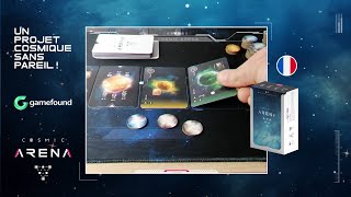 Cosmic Arena est un jeu de confrontation stratégique à deux joueurs, basé sur des cartes, pour des parties d’environ 30 à 40 minutes, à partir de 12 ans. Le but est de construire un système cosmique qui rapporte plus de points que celui de l’adversaire.