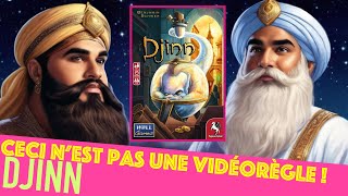 Dans Djinn, les joueurs se déplacent à tour de rôle sur une carte composée de treize lieux, chacun associé à des actions permettant d’obtenir des ressources et de capturer les djinns présents sur six emplacements. Il est possible d’y récupérer des bouteilles et des bouchons, collecter de l’énergie magique, acheter des objets enchantés, recruter des mages, découvrir des passages secrets et bien plus encore.