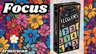 Flowers est un jeu de placement utilisant un paquet de 108 cartes, réparties en quatre couleurs et numérotées de 1 à 4. Chaque joueur commence avec une carte aléatoire dans sa zone de jeu. Les autres cartes sont divisées en piles, une face cachée et les autres avec leur première carte face visible.