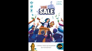 For Sale est un jeu rapide et amusant qui porte, de manière nominale, sur l’achat et la vente de biens immobiliers. Au cours de ses deux phases distinctes, les joueurs enchérissent d’abord pour acquérir plusieurs bâtiments, puis, une fois que tous les bâtiments ont été achetés, ils les revendent afin d’obtenir le profit le plus élevé possible.
