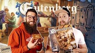 Gutenberg est un jeu de plateau pour un à quatre joueurs dans lequel vous incarnez des pionniers de l’imprimerie au XVe siècle. En honorant des commandes, vous développez votre richesse et votre renommée. En améliorant votre atelier d’impression et en obtenant le soutien de mécènes, vous augmentez votre capacité de production. La victoire revient à l’imprimeur jouissant de la plus grande reconnaissance et de la plus grande fortune.