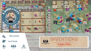 Inventions est un jeu tactique, mais vous réussirez mieux en construisant votre tactique autour d’une stratégie à long terme. La progression de chaque société se mesure en points de propriété intellectuelle (PPI), et le joueur qui en totalise le plus possède la société la plus puissante et remporte la partie.