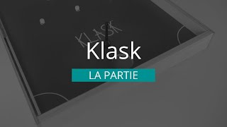 Le plateau est placé entre les deux joueurs, les obstacles blancs sur leurs emplacements, les pions aimantés en position et la balle dans une zone de départ en coin. Le plus jeune joueur commence. On marque un point si la balle finit et reste dans le but adverse, si deux ou trois obstacles blancs s’attachent au pion adverse, si l’adversaire fait tomber son pion dans son propre but ou s’il perd le contrôle de son pion. À chaque point, un marqueur avance, et le premier joueur à atteindre la case KLASK gagne.