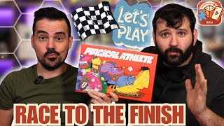 Magical Athlete est un jeu de course totalement chaotique. Lancez un dé et avancez votre coureur d’autant de cases, mais chaque coureur possède des capacités délirantes capables de bouleverser la partie. Quatre courses sont disputées, puis le joueur qui totalise le plus de points l’emporte.