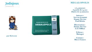 Dans Megalopolis, les joueurs travaillent ensemble pour bâtir une nouvelle ville à partir de rien. Avec seulement dix-huit cartes et un système de score variable, aucune partie ne se ressemble. À chaque tour, un joueur pose une carte de sa main dans la ville en expansion, en cherchant à marquer un maximum de points. Il faudra communiquer et planifier sans révéler ses cartes afin de développer au mieux de grandes zones dans les quatre types de quartiers. Attention toutefois, la ville déteste payer l’entretien des routes, et chacune d’elles fera perdre des points en fin de partie. Lorsque toutes les cartes ont été posées, la partie s’achève et les joueurs vérifient s’ils ont atteint le score minimum, généré dynamiquement pour cette partie.