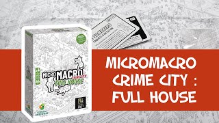MicroMacro: Crime City – Full House propose 16 affaires à résoudre. Chaque affaire se compose de plusieurs cartes qui vous demandent de trouver un élément précis sur la carte, de découvrir où une personne s’est rendue ou de révéler toute information utile à l’enquête. Le plan de la ville représente à la fois l’espace et le temps, si bien que l’on retrouve souvent les mêmes personnages à différents endroits au fil de leur parcours. À vous de reconstituer les événements, soit en suivant les cartes une à une, soit en ne lisant que la carte de départ et en tentant de tout déduire par vous-même. Serez-vous capable de répondre correctement à toutes les questions de chaque affaire ?