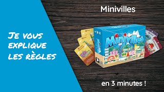Minivilles est un jeu rapide pour deux à quatre joueurs. Chacun développe sa ville à sa manière afin de terminer la construction de tous ses monuments avant les autres. À son tour, un joueur lance un ou deux dés. Si le résultat correspond au numéro d’un bâtiment qu’il possède, l’effet de ce bâtiment s’active, parfois au profit des adversaires également. Avec l’argent gagné, le joueur peut construire un nouveau bâtiment ou un monument, renforçant ainsi les revenus futurs de sa ville. Le premier joueur à achever tous ses monuments remporte la partie.