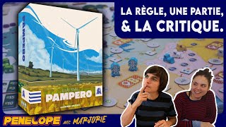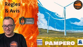 Pampero est un jeu de gestion de main et de sélection d’actions par cartes. Chaque joueur commence avec huit cartes qu’il joue sur son propre plateau, composé de deux rangées permettant d’activer des actions dans différents secteurs. À chaque tour, il peut soit jouer une carte sur l’emplacement libre le plus à gauche d’une rangée, soit récupérer toutes ses cartes. Après trois actions, une phase de consolidation a lieu durant laquelle on récupère une carte, on transforme l’énergie stockée en batteries, on perçoit des revenus et on avance le temps de jeu. Le joueur le plus riche en fin de partie l’emporte.