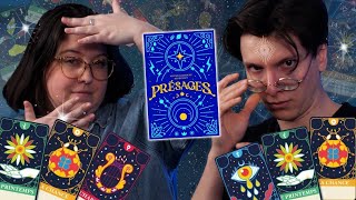 Dans Présages, vous jouez en équipe avec un objectif clair : vous débarrasser de toutes vos cartes sauf une. Chaque carte possède un effet qui interagit avec celles de votre partenaire comme avec celles de vos adversaires. Il vous faudra donc faire preuve de stratégie, d'observation et de bon timing pour déclencher les bonnes combinaisons et garder une longueur d'avance.