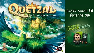 Quetzal, la cité des oiseaux sacrés, vient d’être découverte. Vous disposez de cinq jours pour explorer le site et récupérer les plus beaux objets qui y sont enfouis. Saurez-vous gérer au mieux l’équipe qui vous est confiée afin d’optimiser vos fouilles jour après jour ?