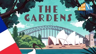Dans The Gardens, les joueurs draftent des cartes représentant différents éléments du jardin afin de construire devant eux leur propre portion du site. Ils marquent ensuite des points en fonction de ce que les visiteurs voient en se promenant le long des parterres de fleurs, des bassins, des arbres indigènes et des statues. Le tableau personnel se compose de trois rangées, côté eau, pelouse et côté ville, et les joueurs ajoutent une carte par tour jusqu’à ce que l’espace soit entièrement rempli.