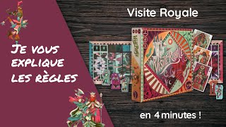 Visite Royale est un jeu dans lequel vous et votre adversaire rivalisez pour attirer le Roi dans votre château. À votre tour, vous jouez une carte de votre main afin de déplacer des personnages ou d’utiliser les pouvoirs du Magicien et du Bouffon pour influencer la position du Roi et de sa Cour. Vous pouvez ensuite déplacer la Couronne entre les deux duchés en fonction de la position de chaque personnage. Le premier joueur qui parvient à accueillir le Roi ou la Couronne dans son château remporte immédiatement la partie. Si le Roi reste indécis, assurez-vous qu’il termine la partie dans votre duché afin d’obtenir son approbation finale.